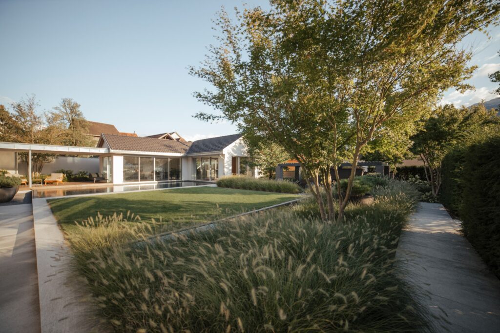 Ein Pool setzt einen eigenen Glanzpunkt. Er verwandelt den Garten in eine persönliche Oase der Erholung, die schnell zu einem zentralen Rückzugsort wird. Die klaren Linien des Beckens umspielen die Gesamtästhetik des Aussenraums und bestimmen dessen Ordnung und Struktur. Harmonisch lässt sich der Pool in Terrassen und bepflanzte Zonen integrieren, wodurch er oft zur Brücke zwischen Innen und Aussen wird und den Wohnbereich hinaus ins Freie trägt.